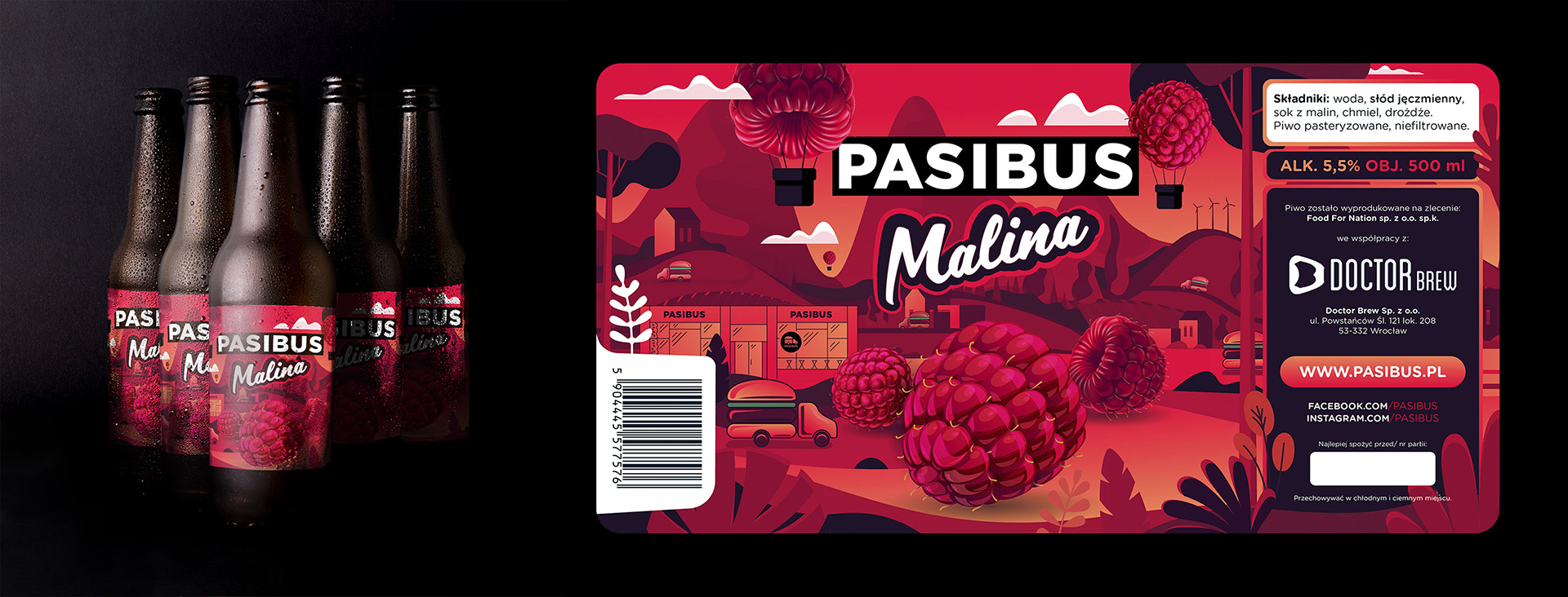 Undoubtedly, PASIBUS Raspberry is the most delicious flavored beer on the market. Love for it definitely facilitated the design process.
