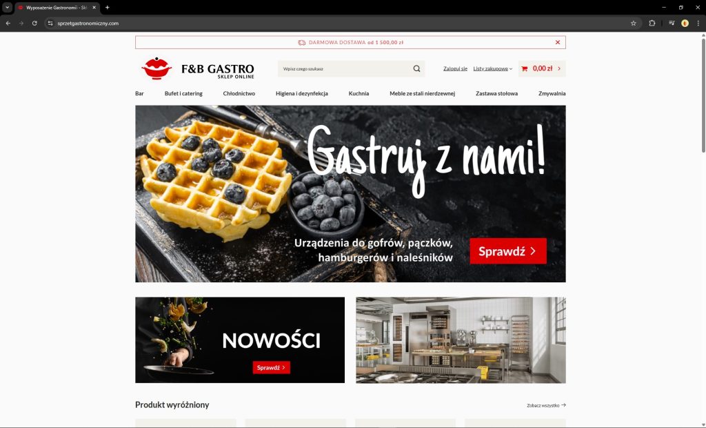 This case study presents the large-scale online store I’ve built for the Wrocław-based company F&B Gastro: a platform running on IdoSell, powered by 24,361 products from 10 different suppliers and an extensive layer of custom automation and content.